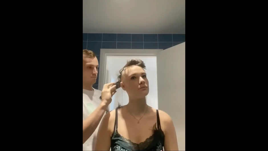 U videu koji je prvo podelila na TikToku, a zatim na Jutjubu Demijen je obrijao njenu glavu, a zatim i svoju u znak podrške Evi.