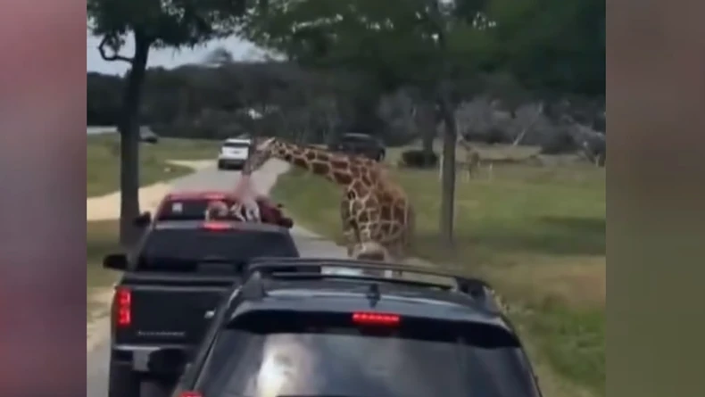 Porodica iz Teksasa doživela je pravi incident tokom posete centru za divlje životinje nakon što je žirafa pokupila njihovo dete iz porodičnog kabrioleta.