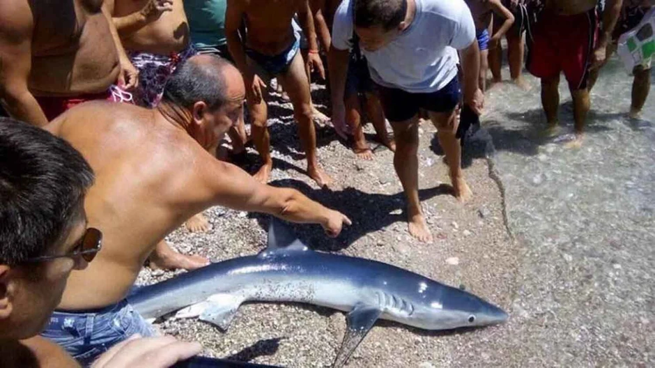 Na plaži "Lobelia" u Toploj kupači su danas mogli da vide mladunče ajkule koje su ljudi golim rukama izvadili iz plićaka.