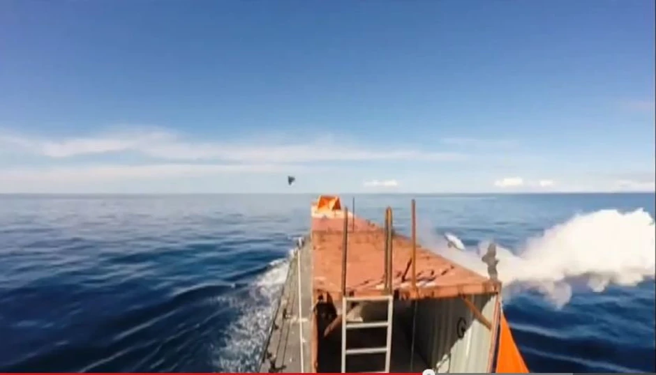 Iako na snimku deluje da barem jedan od golubova nije preživeo trenutak kada "tomahavk" probija zid od naslaganih brodskih kontejnera, autor klipa tvrdi da su obe ptice preživele.