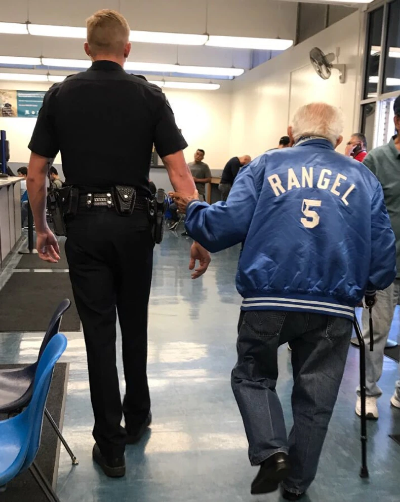 Odsek Montebelo okačio je u spetembru fotografiju policajca Džozeta kako vodi starca do Odseka za motorna vozila, gde su mu izdati novi dokumenti.