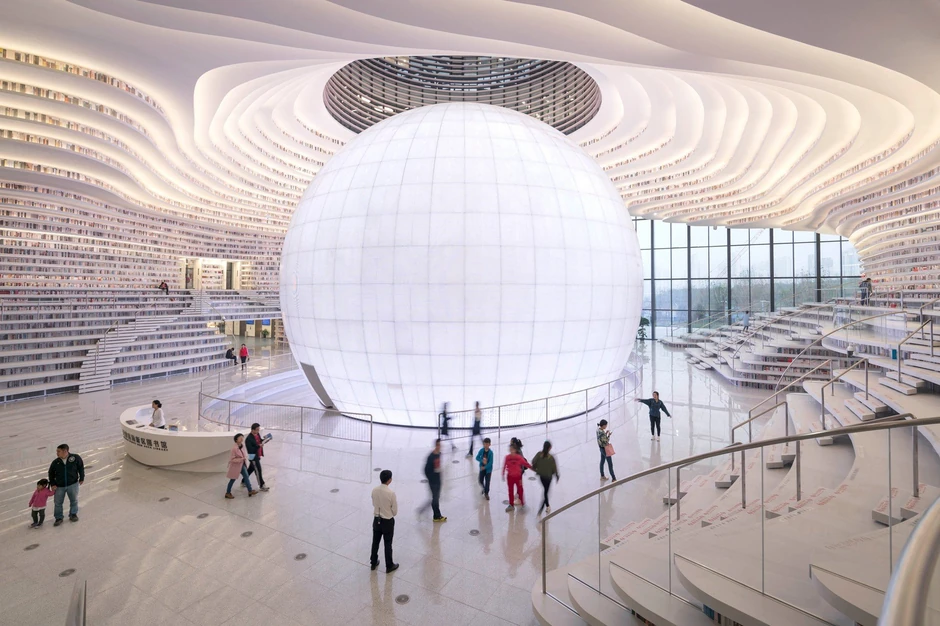 Futuristička Binhai biblioteka u kineskom gradu Tianjinu, čije police idu spiralno do plafona, osvojila je društvene mreže. Poznata je i pod nazivom "oko", jer spolja ima oblik otvorenog oka.