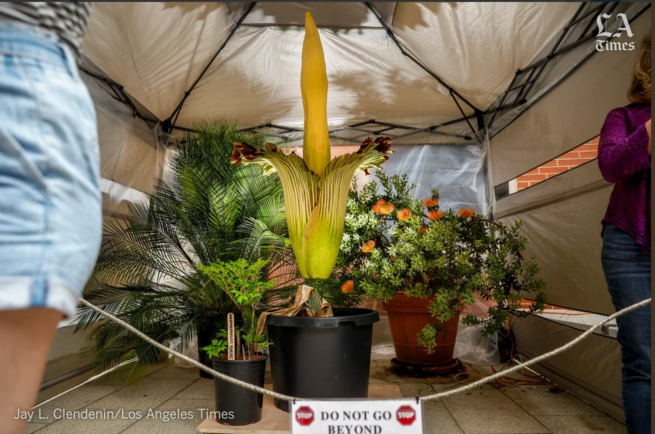 Zahvaljujući vlažnom vremenu, građani Južne Kalifornije ovog proleća imali su priliku da dožive spektakularno cvetanje biljaka. Cvetanje biljke Amorfphophallus titanum, poznatije kao "cvet mrtvac", koje su prvi put mogli da vide ovog vikenda između Centra za molekularne i prirodne nauke i Dvorane nauka u kampusu Državnog univerziteta Kalifornije u Long Biču, ipak zaslužuje posebnu pažnju, jer se događa tek svakih pet do deset godina.