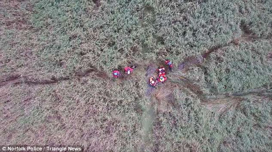 Policija je objavila snimak trenutka kada je dron spazio Pjua zaglibljenog u blatu, u močvarnoj oblasti Tičvel, koja zahvata površinu od 170 hektara.