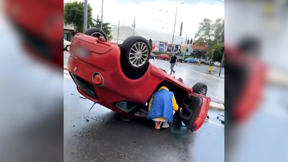 "Znaš koliko mi je smešno", govorio je mladić koji je sve zabeležio telefonom, dok je njegov drugar obilazio automobil koji je stajao prevrnut na krov na sred prometne ulice. U jednom trenutku, on je krenuo ka mladiću sa mobilnim uređajem, takođe se smejući.
