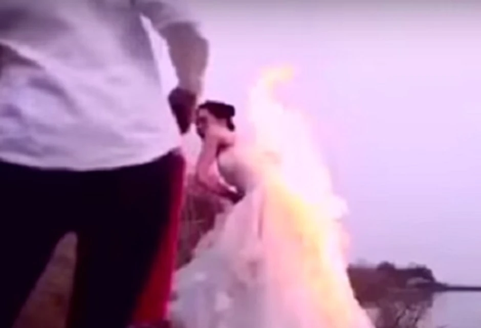 U želji da imaju što originalnije i fascinantnije venčanje, neke mlade zaista odu predaleko. Jedna Kineskinja je želela dramatične fotografije sa venčanja, pa je zatražila da joj venčanica gori.
