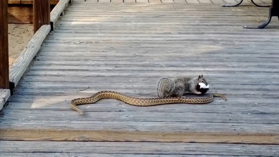 Iz Kalifornije stiže gotovo neverovatan snimak - zmija, otrovna i opasna životinja od koje većinu podilazi jeza, podvijenog repa (bukvalno) morala je da napusti bojno polje. Pobednik neobičnog duela je jedna uporna veverica.