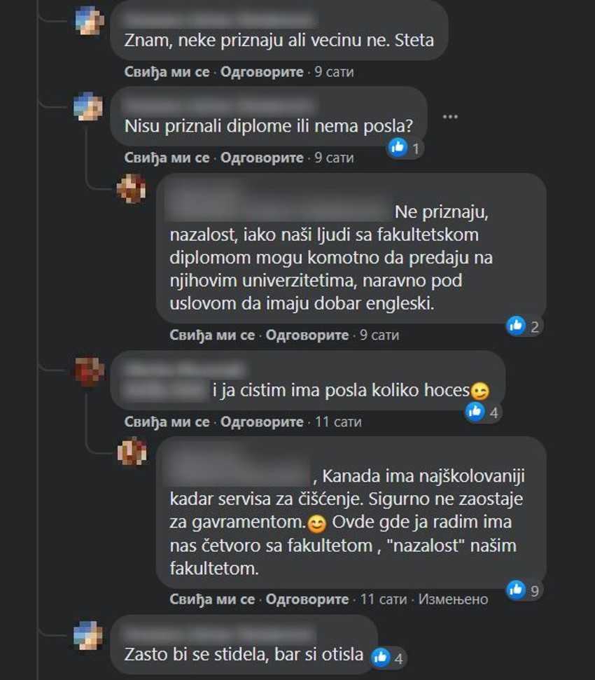 Među komentarima izdvojili su se i dostavljači hrane, radnici u IT sektoru, ali i čistačice, te je jedna od njih navela da u njenom kolektivu postoji čak četiri osobe sa fakultetskom diplomom koje sa bave ovim zanimanjem.