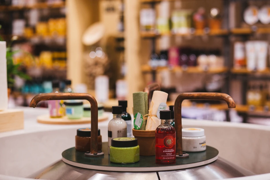 Sa novim konceptom, The Body Shop se vraća svojim korenima i produbljuje svoju strast prema kreiranju zdravije budućnosti i održivih ekoloških rešenja. Prodavnica je sačinjena od elemenata napravljenih od recikliranih materijala.