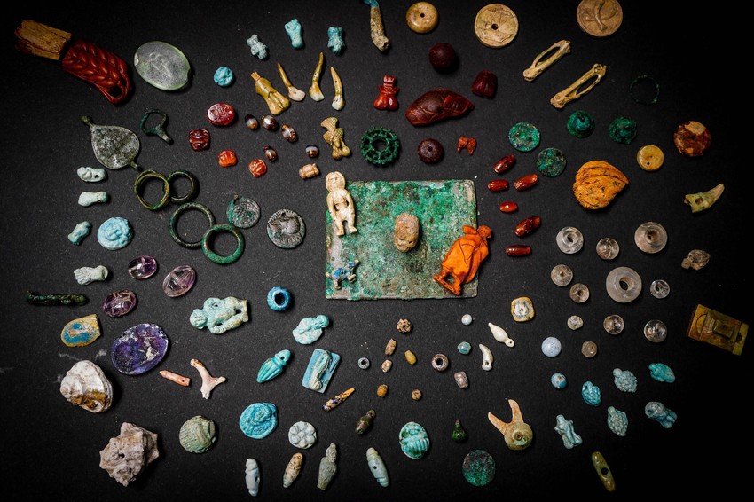 Identifikovani su amuleti u obliku bube sa Bliskog istoka i perle sa urezanom glavom Dionisa, rimskog boga vina, plodnosti i obrednog ludila.