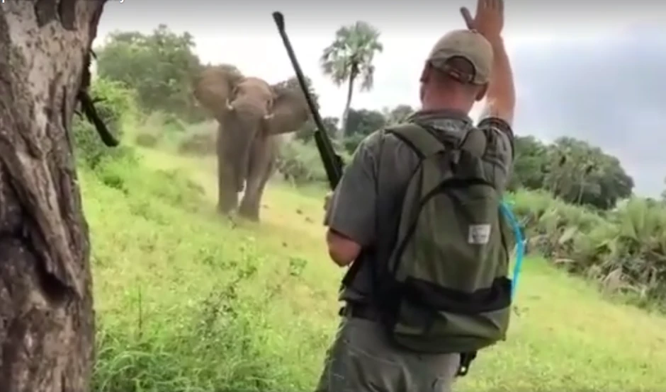 Dramatičan video pojavio se na internetu u kojem se vidi vodič safarija koji je samo rukom zaustavio juriš pobesnelog slona.