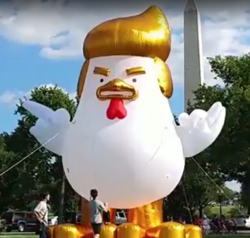 Za novi dodatak zaslužan je dokumentarista Taran Sing Brar, koji je rekao da je postavio balon u inspirisan Trampom kako bi privukao pažnju na predsednikovo “slabo i neefikasno” vođstvo. Brar je optužio predsednika da “igra kukavice sa Severnom Korejom”.