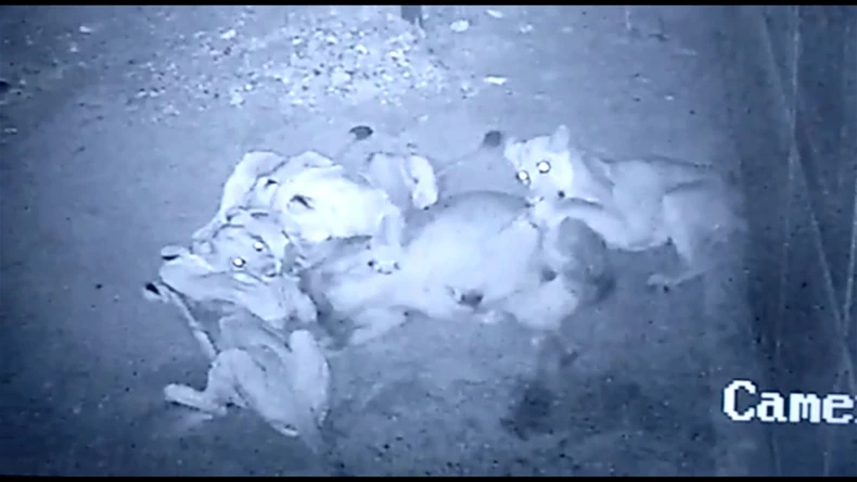 Video-snimak koji nam stiže iz Indije može biti uznemirujuć za neke gledaoce. Na njemu se vidi kako čopor lavova lovi kravu kojoj, uprkos brojnim pokušajima, nije bilo spasa: