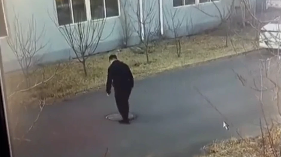 Video je poluortvoren šaht na ulici i želeo je da ga popravi.