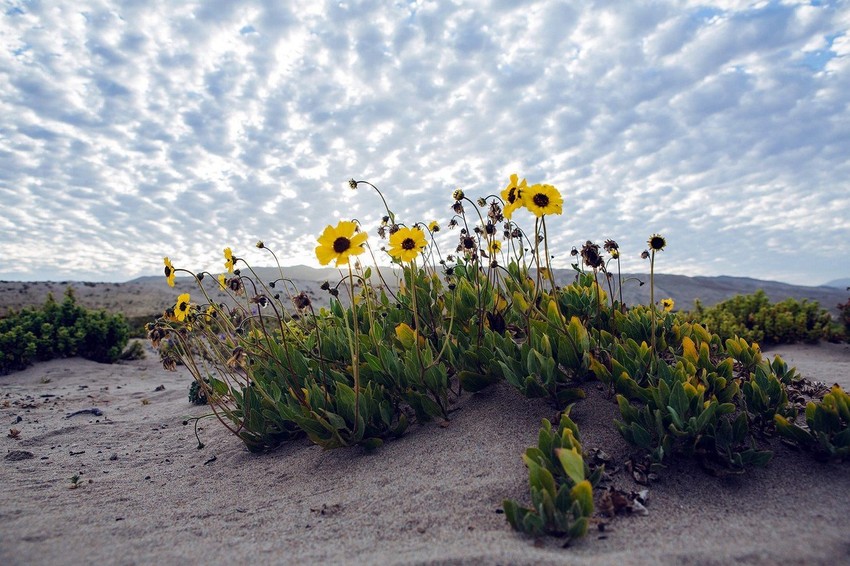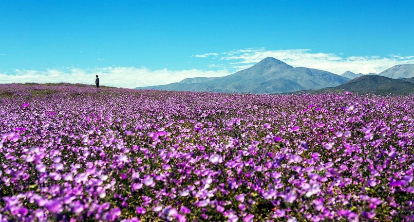 Ali ovih dana pustinja je neprepoznatljiva. Redak prirodni fenomen obojio je predeo u blistave boje: na mestu koje obično liči na površinu Meseca cvetaju hiljade raznobojnih cvetova.