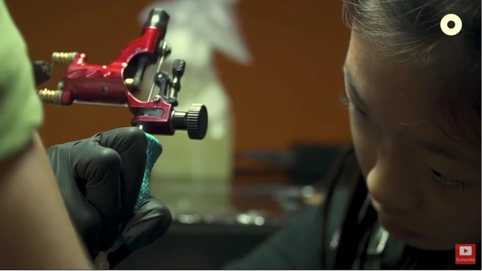 Devojčica je provodila vikende i raspuste motajući se oko tatine mašinice i posmatrajući ga kako radi, upijala je trikove, pa je za samo šest meseci bila spremna da uradi svoju prvu tetovažu.