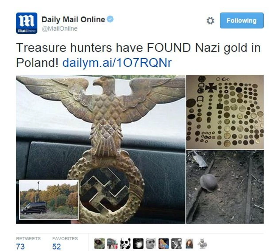 Lovci na blago koji su pretraživali šumu iznad tunela u kojem je pronađen nacistički “Zlatni voz”, tvrde da su pronašli Nacističkog orla, zlatne novčiče i druge suvenire iz Drugog svetskog rata koji dokazuju da bi decenijama skriveno blago zaista moglo da sadrži neprocenjive dragulje.