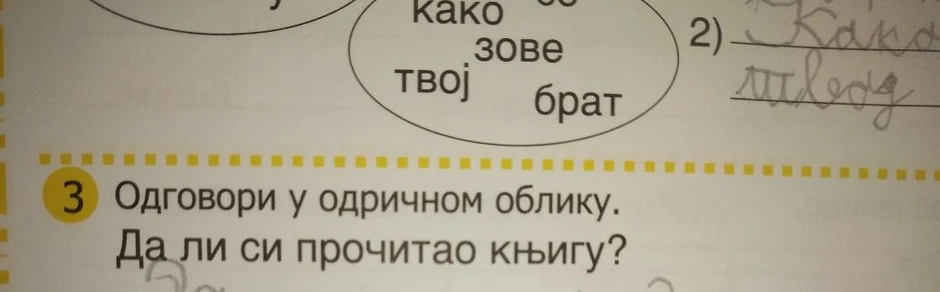 Mama jednog školarca podelila je na svom Tviter nalogu fotografiju na kojoj se vide zadaci iz vežbanke za srpski jezik, kao i odgovori, odnosno, rešenja zadataka, koje je njen sin ispisao ispod postavljenih zadataka. Naime, mališan, za koga je mama rekla da je sjajan matematičar, nije još uvek baš najbolje savladao pravopis i pravila srpskog jezika, ali mu je sudeći po datim rešenjima, logika ipak jača strana.