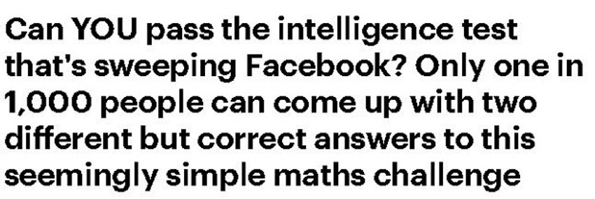 Iako je na prvi pogled matematički zadatak ispred vas lagan, izazvao je brojne rasprave na društvenim mrežama. Naime, autori kratkog "testa inteligencije" sugerišu da postoje dva rešenja te pozivaju na "razmišljanje izvan okvira", prenosi "Independent".