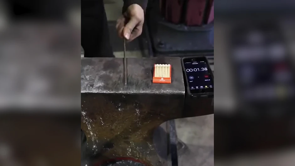 Da li znate koliko je ČELIK VRUĆ prilikom kovanja? Dovoljno da ZAPALI KUTIJU ŠIBICA samo pri dodiru (VIDEO)