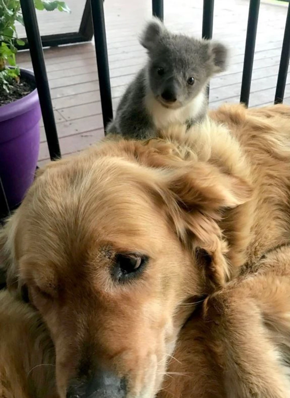 U moru takvih snimaka i fotografija, ipak se izdvojila jedna u kojoj je glavni akter zlatni retriver Aša. Naime, on se na vratima porodičnog doma u kojem živi sa svojim vlasnicima pojavio sa koalom starom nekoliko meseci na svojim leđima.