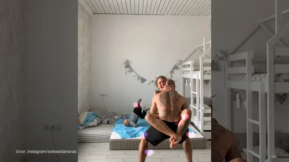Naime, dok je žena koja se na Instagramu predstavlja kao Sveta Ananas snimala kako skače u naručje svog muža Andreja, nije ni videla da je njen sinčić trogodišnji Gabrijel imitira i da skače poput nje.