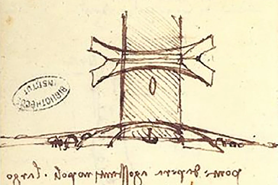Da Vinčijeva skica, koja je dugo bila izgubljena, prikazuje jedan lučni most bez ikakvih lepkova ili nosećih stubova. Most je osmišljen tako da stoji samo zahvaljujući kompresiji. Taj most bi bio dugačak 280 metara i bio bi najduži u vreme kada ga je čuveni renesansni umetnik nacrtao.