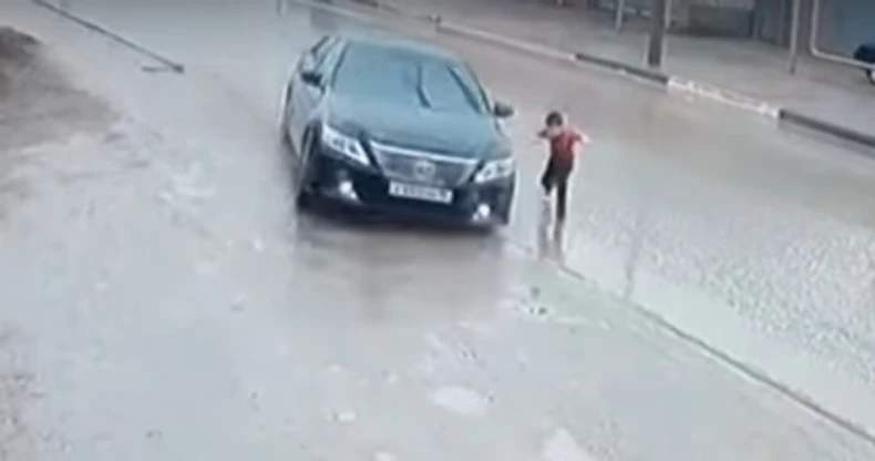 Jedan dečak je za dlaku izbegao smrt zahvaljujući prisebnosti vozača. Mališan starosti oko sedam godina krenuo je da pretrči put u čečenskom gradu Kurčaloju, oko 45 kilometara istočno od Groznija.