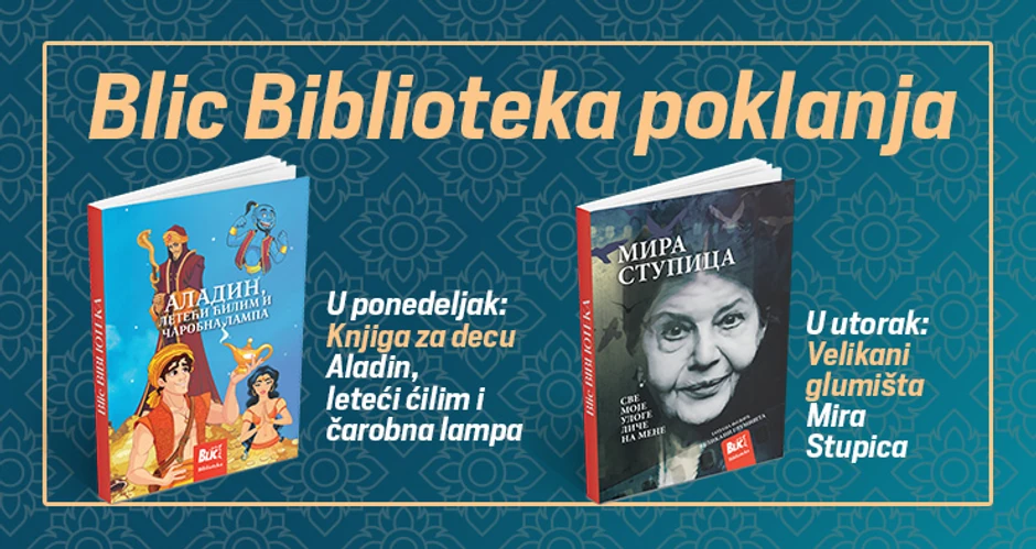 Ponedeljak je dan rezervisan za "Blic" i dečije knjige! Poklanjamo vam novi naslov za dečiju biblioteku - "Aladin, leteći ćilim i čarobna lampa", a već sutradan, u utorak 11. decembra nastavak edicije "Velikani glimišta" sa knjigom o životu Mire Stupice.