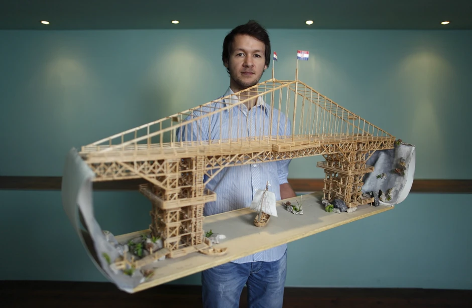 Njegov prvi rad, most, bio već je prilično ambiciozan i sadržavao je 7.500 šibica, a najveća je skulptura u njegovom opusu nazvana "Agora" i sadrži čak 157.000 šibica.