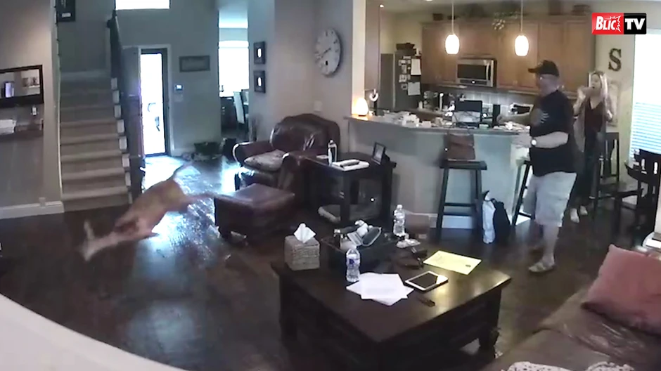 Ova porodica je taman htela da sedne i večera, kad se iznenada pojavio nepozvani gost na njihovoj gozbi. Jelen je zapravo ušao kroz prednja vrata od kuće i projurio kroz njihovu dnevnu sobu. Članovi porodice su ostali mirni i pozvali su nadležne, pošto se životinja nakon nekoliko trenutaka povukla ka ulaznim vratima, ali je onda odlučila da ostane da leži na tom mestu.
