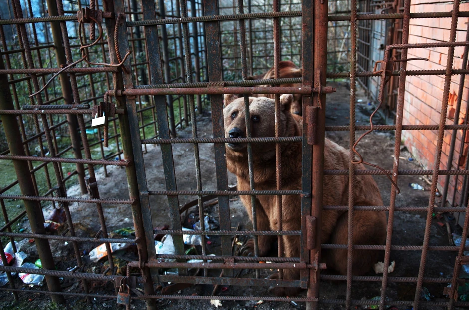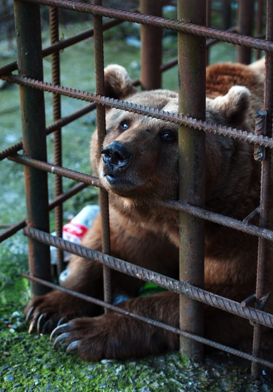 U kavezu iza jednog restorana u Sočiju već 20 godina žive dva medveda. Zahvaljujući dobrotvornoj organizaciji Brižit Bardo za očuvanje prava životinja, ova dva medva će dobiti novi dom i biće izvađeni iz prljavih kaveza prepunih otpadaka.