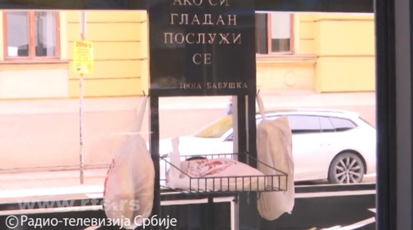 "Ako si gladan, posluži se" piše na pultu gde su ispred pekare "Babuška" ostavljene kese za svežim hlebom i pecivom. Iz radionice se svaki put, kada se dopunjuju vitrine, proizvodi pakuju i za one koji nemaju dovoljno. Radnici pekare ponosni su na poslodavca i njegovu humanost, piše "RTS".