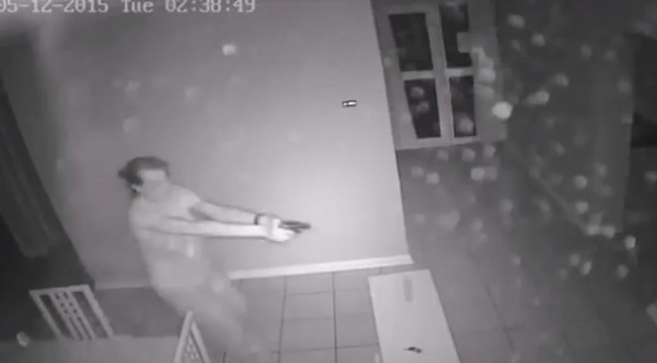Sigurnosna kamera vlasnika kuće u Južnoj Africi snimila je priovalnike koji su upali u nju dok je spavao i trenutak kada je njegova devojka koja se probudila počela da puca na njih.