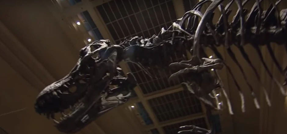 Fosil Tiranosaurusa pronađen je u Montani 1988. godine, dugačak je čak 11,5 metara i postavljen je iznad skeleta Triceratopsa, tako da izgleda kao da najveći mesožder među dinosaurusima stoji iznad palog biljojeda. Ove dve vrste dinosaurusa živele su pre 68-66 miliona godina na zapadu Severne Amerike. Ideja je, dodaje Karano, da uloga predatora i plena bude bolje prikazana. Triceratops je bio visok devet metara, imao je rogove iznad nosa i očiju i koštana ojačanja koja su mu štitila vrat.