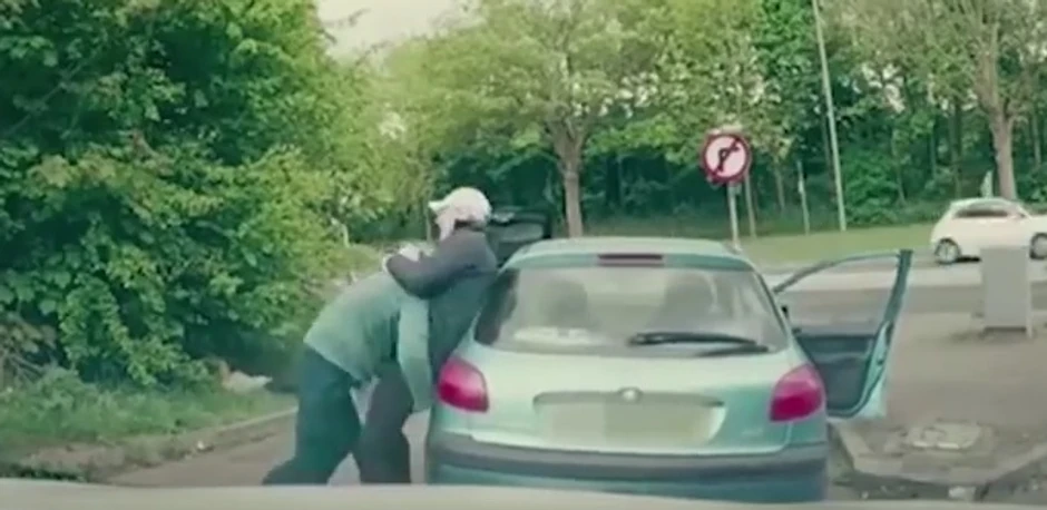 Snimak su načinile dve žene u autu iza “pežoa”. One su pozvale policiju i hitnu pomoć, ali je do tada nepoznati borac pobedonosno napustio mesto.