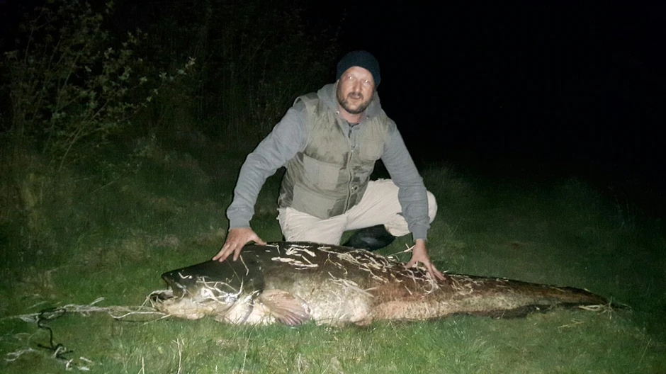 Slobodan Nikolić, ribolovac iz Kragujevca upecao je sinoć na jezeru Gruža soma dugog 2.25 metara i teškog 80 kilograma.