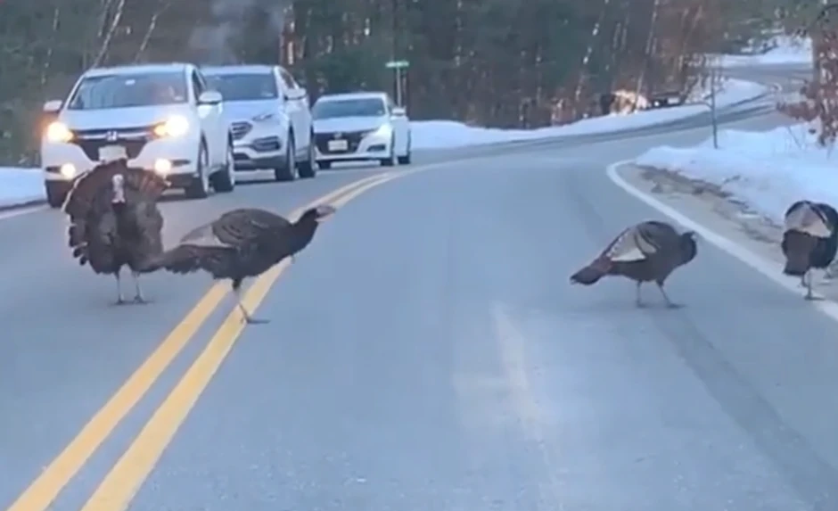 Vozači koji su prolazili putem kroz Nju Hempšir u Americi, našli su se u pravom čudu kada je nasred puta isred njih zakoračio ćuran, ali pravo iznenađenje je nastupilo tek posle nekoliko sekundi kada se pojavilo još devet ćurki.