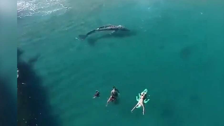 Par trenutaka kasnije pojavilo se nešto neverovatno, džinovska životinja ušla je u predeo plaže. Kupači su ostali vrlo smireni, kao da ispod njih nije kružio džin. Životinja je samo došla u posetu, prošla par krugova i mirno napustila zaliv bez daljih incidenata.