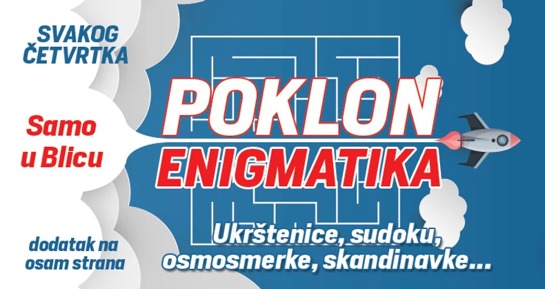 Uz "Blic" danas na poklon i Enigmatika. Uživajte u ukrštenicama, sudoku, osmosmerkama, rebusima koji vas očekuju svakog četvrtka u "Blicu"!