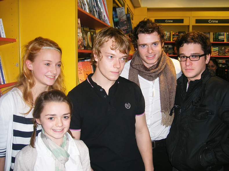 Mladi momak sa fotografije, desno od Sofi, bio je te 2011. godine na početku karijere. Alfi Alen (32) tumačio je lik Teona Grejdžoja koji više nije u samoj seriji. Naime, iako nije bio deo porodice Stark, Ned Stark ga je tretirao kao jednog od svojih sinova, da bi Teon postao neprijatelj kuće Stark kada je osvojio Zimovrel, ali se ipak iskupio za to kada je hrabro branio Sansu, a kasnije i Brena od Kralja noći i tako izgubio život.