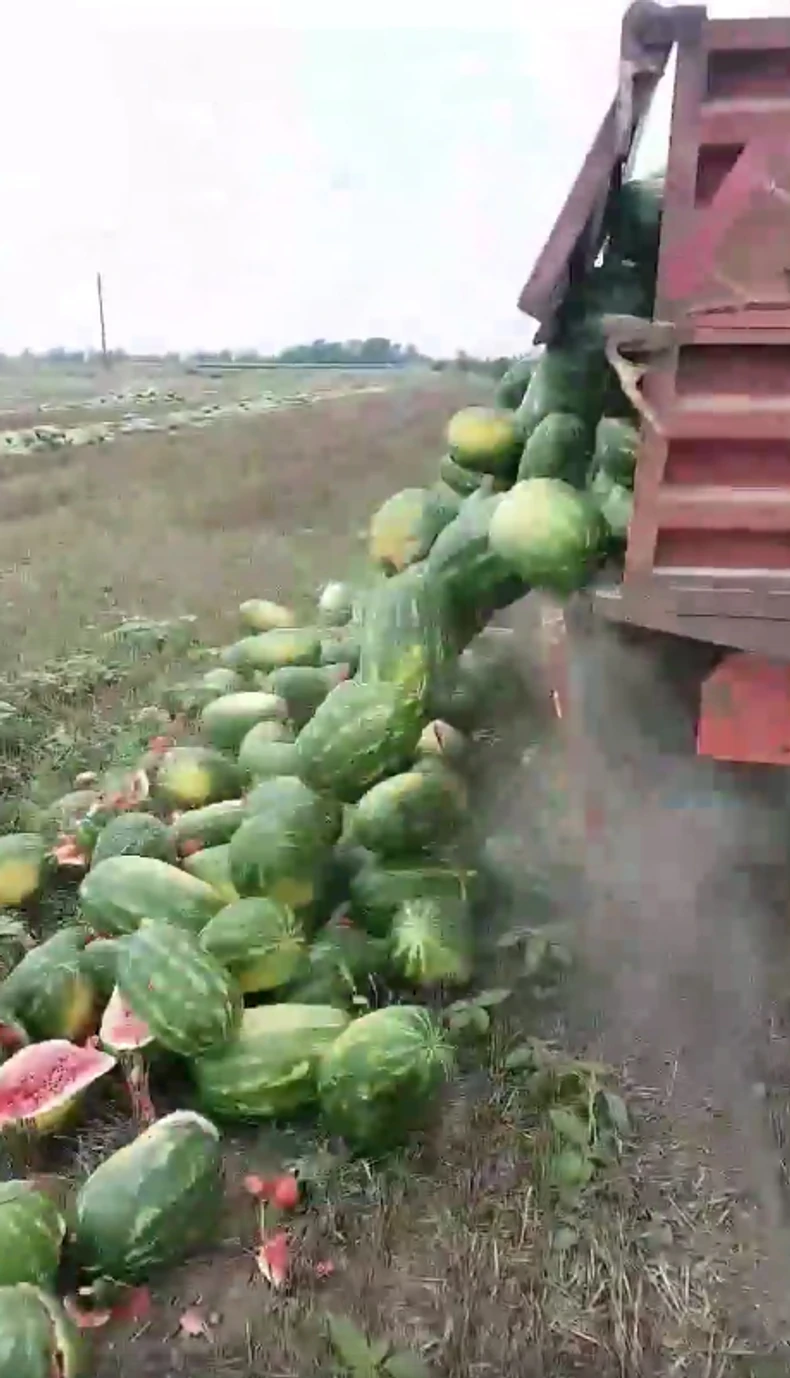 Objašnjava da su morali da bace preko 25 tona lubenica jer nemaju kome da ih prodaju.
