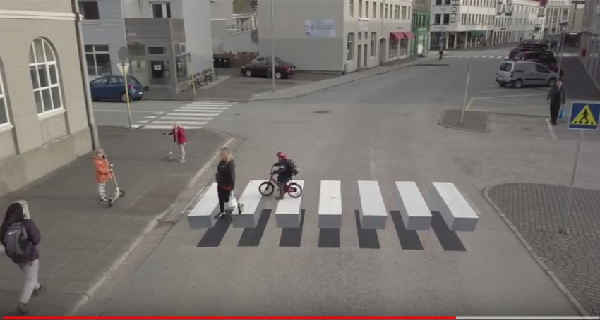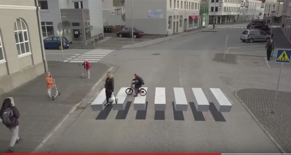 Islandsko mestašce Isafjerdir pribeglo je kreativnom rešenju: napravili su zebru koja vozačima izgleda kao da se kreću prema velikoj prepreci tako da automatski koče. Ideju je pokrenuo Ralf Trila, koji je zadužen za ekološka pitanja u malom ribarskom selu na severozapadnoj obali zemlje.