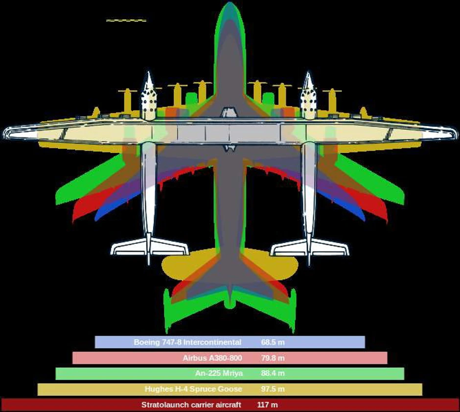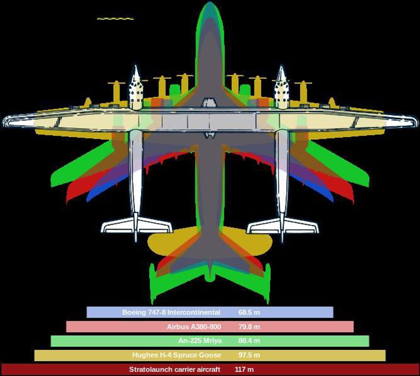 Raspon krila aviona "Stratolaunch Carrier" iznosi 117 metara, a pokretaće ga šest motora klase 747.