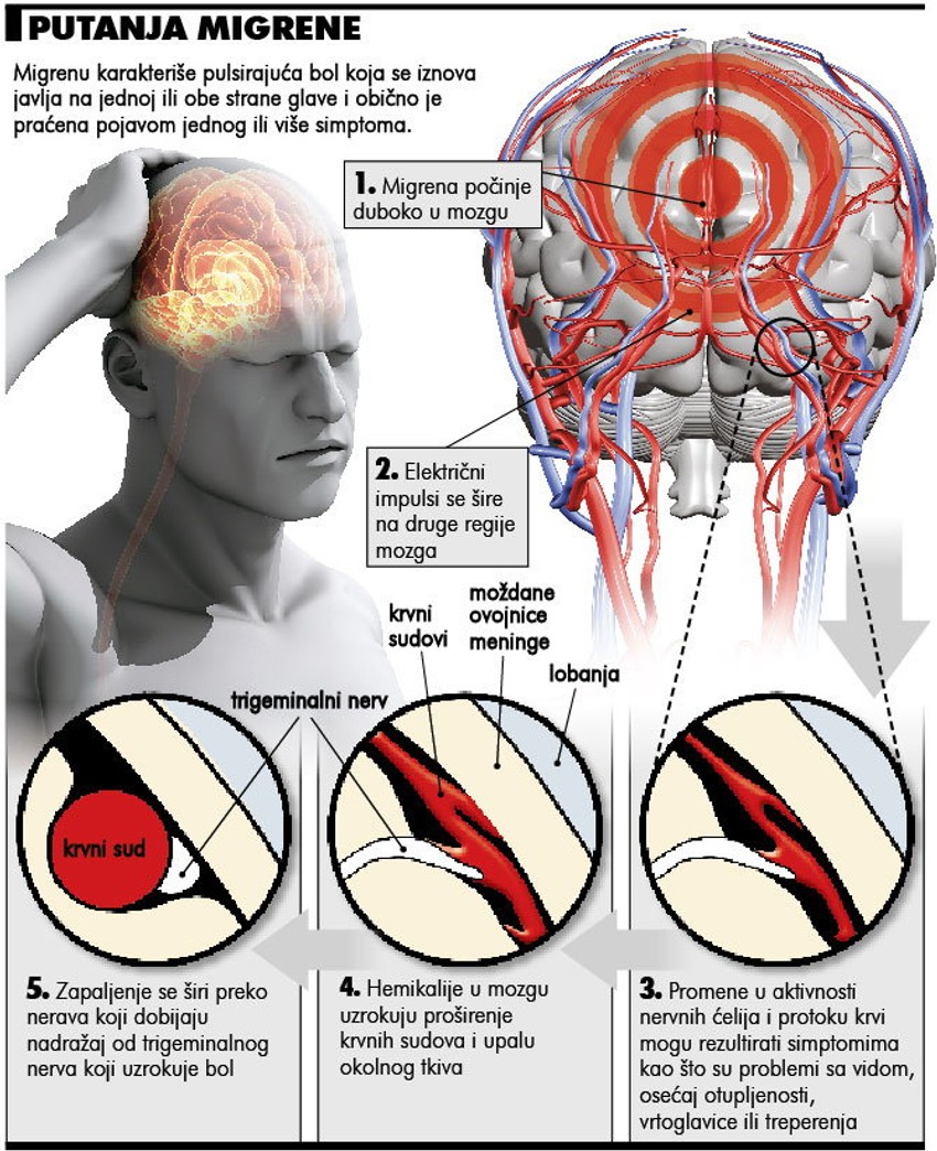 – Nije svaka glavobolja migrena. Naučnici razlikuju 13 različitih vrsta glavobolja. Neke se javljaju kao prateća pojava kod poznatih bolesti ili tegoba, kao što su povišena temperatura, upala sinusa, grip, povrede, krvarenje u mozgu, tumor mozga i sl. Migrena je zasebna bolest i ima jasno određene karakteristike. Nemojte da je brkate sa tenzionom glavoboljom, koja je delimično uzrokovana i psihološkim faktorima: ako je lečite lekovima protiv migrene, nećete ništa postići. Od ključnog je značaja da se postavi prava dijagnoza – objašnjava dr Nevenka Dimitrijević, lekar opšte prakse, za „Blic“.