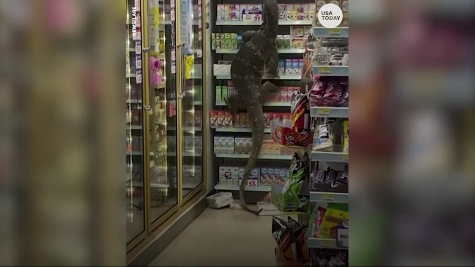 Ogroman gušter iznenadio je kupce i radnike jednog supermarketa na periferiji Bangkoka. Iz obližnjeg kanala došetao je direktno do polica u zadnjem delu prostorije.