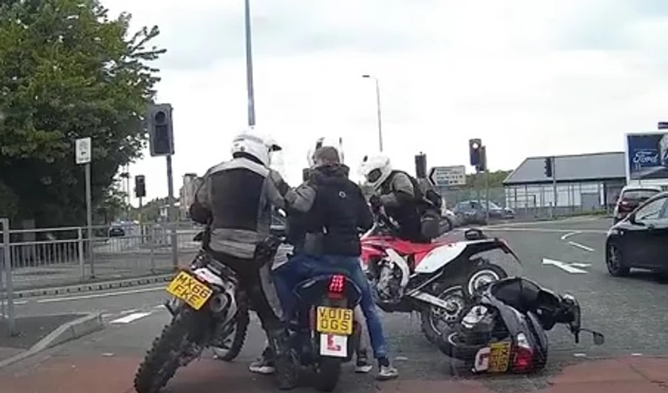 Na internetu se pojavio neverovatan video snimak hapšenja u kom je prikazano kako su pripadnici policije u Mančesteru, Velikoj Britaniji, na motociklima presreli trojicu vozača skutera na takav način da im je dalji prolazak kroz relativno prometnu ulicu bio u potpunosti onemogućen, piše "Dejli mejl".