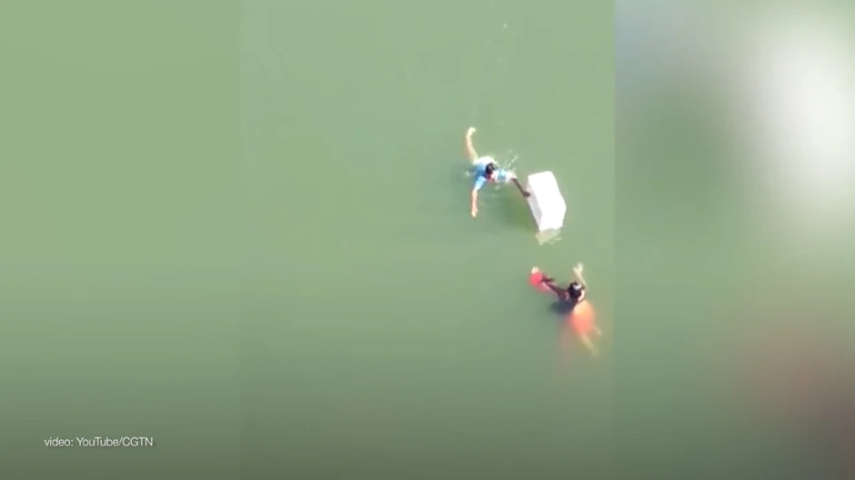 Dogurao je kutiju do nje da se uhvati za nju, a zatim odvukao davljenicu do obale.