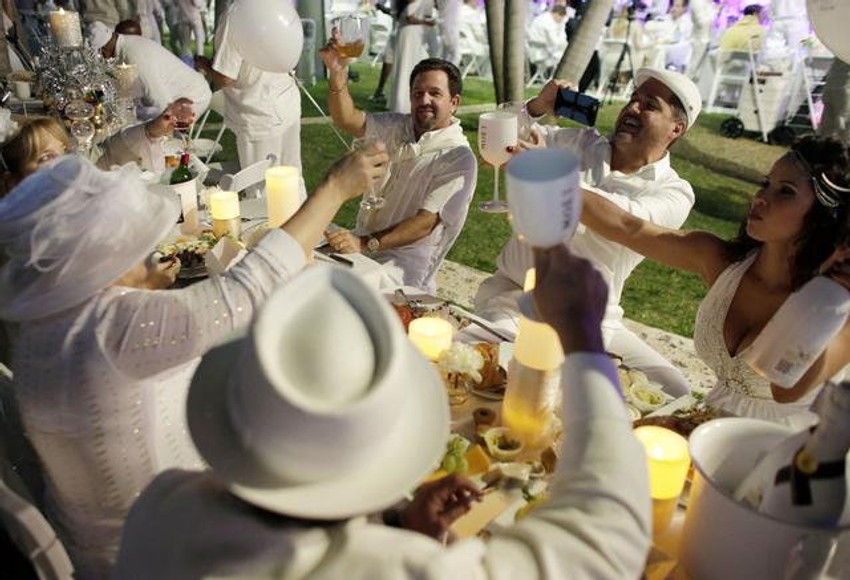 Za manje od jednog sata, jedan od parkova u Majamiju pretvoren je u elegantni restoran na otvorenom u kom su servirana gurmanska jela, a gosti bili obučeni u belo, od glave do pete.