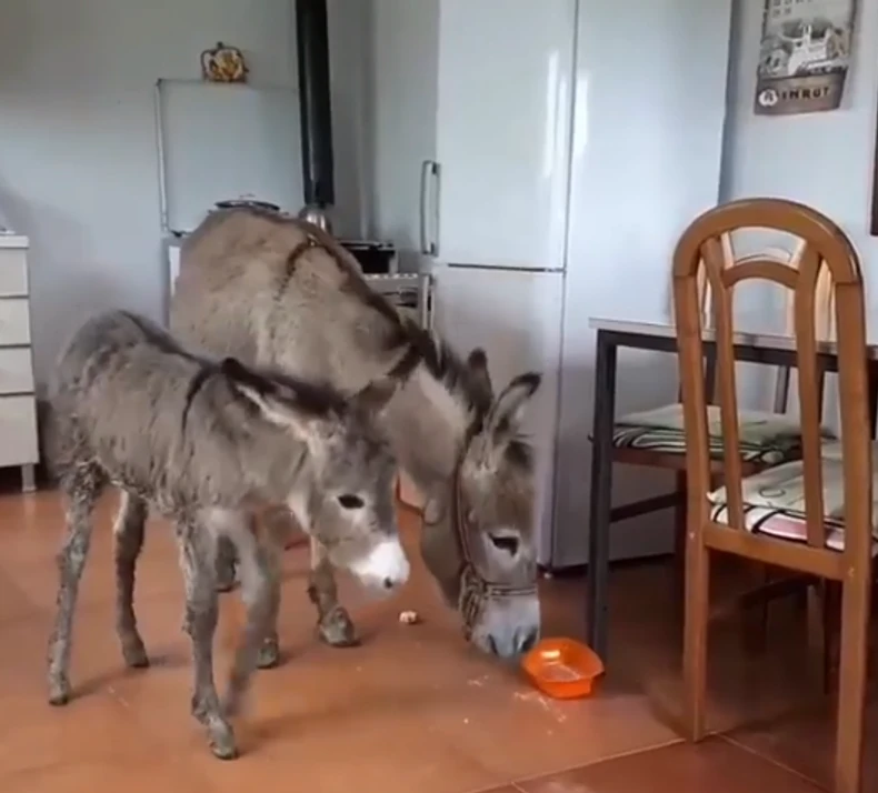 Na Fejsbuk stranici Podgorički vremeplov osvanuo je video snimak koji je nastao u jednom od domaćinstava Crne Gore, a glavni akteri su magarica i njeno mladunče koji su nekako ušli u kuhinju.